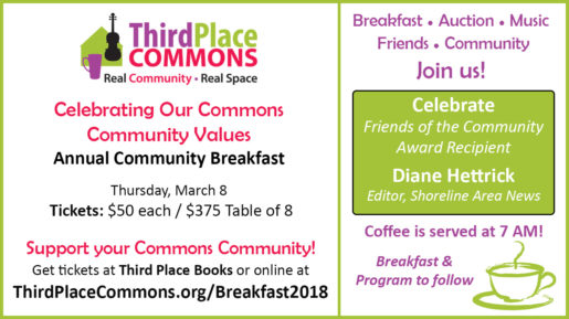 Third Place Commons invites you to join us in Celebrating Our Commons Community Values at our annual community breakfast on Thursday, March 8th.